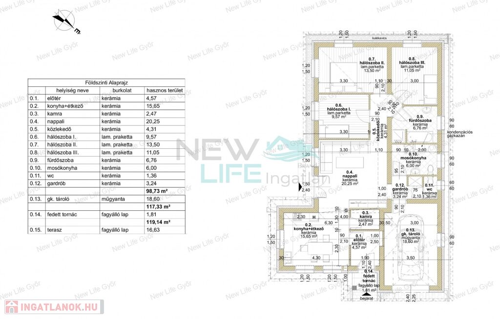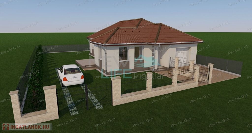 Győrladaméron, újonnan nyíló utcában, családi házas övezetben, igényes kivitelezőtől kínálom megvételre ezt az 501 m2-es telekre épülő 126 m2 alapterületű 3 hálószoba+ nappali-étkező-konyhás újépítésű házat, 18nm-es garázzsal és 16m2-es terasszal.