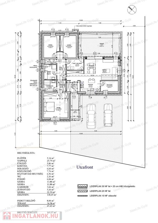 A ház 30NF falazóelemekből épül 12cm-es aljzatszigeteléssel, fafödémes (30cm födémszigetelés), a homlokzatra 20 cm vastag Drywit hőszigetelő rendszer kerül. Nyílászárói 6 légkamrás 3 rétegű hőszigetelt műanyag ablakok A fűtését és melegvíz ellátását hőszivattyú látja el padlófűtéses hőleadással.