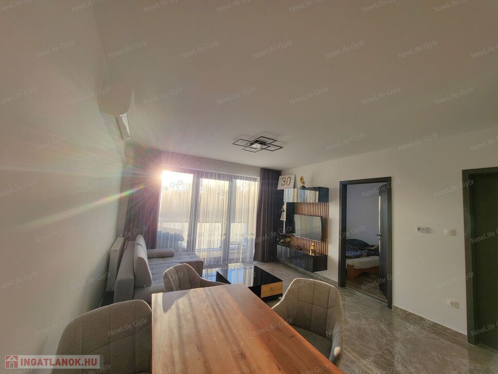 Eladó teljesen felújított, bútorozott 1. emeleti téglalakás saját parkolóval Győr-Ménfőcsanakon – azonnal költözhető!