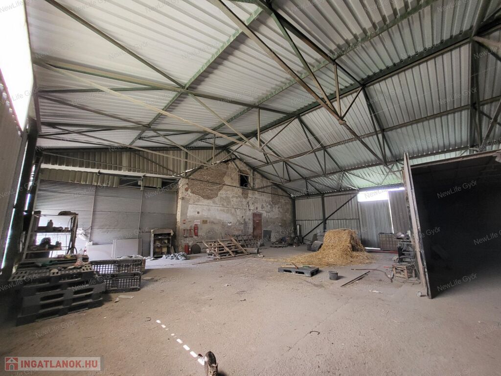 - 50×12 m-es tégla raktár (iroda, konyha, ipari áram, gázcsonk, felszerelt radiátorok)