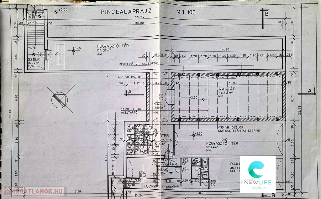 • 430 m² alapterület: Az épület nagy része jó állapotú, bizonyos részek modernizálásra szorulnak.