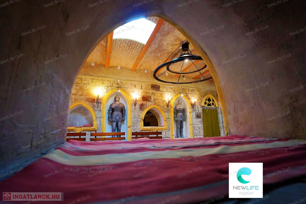 Győrszentiván kertvárosi részén, közvetlenül az M1-es főút mellett található, 2506 m²-es telken elhelyezkedő, különleges kialakítású vendéglátó egység keresi új tulajdonosát. Ez a páratlan építmény egykor a népszerű Sir Vincent Lovagi Étteremként működött, ahol középkori hangulatban élvezhették a vendégek a lakodalmakat és más eseményeket. Most pedig Te is életet lehelhetsz ebbe az ikonikus helyszínbe – vagy akár teljesen új funkcióval töltheted meg!