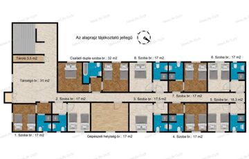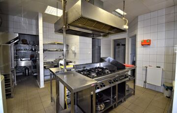 213 m2: étterem (13m*11m) konyha (50 fő kiszolgálására alkalmas), raktárak,
