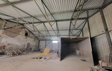 - 50×12 m-es tégla raktár (iroda, konyha, ipari áram, gázcsonk, felszerelt radiátorok)